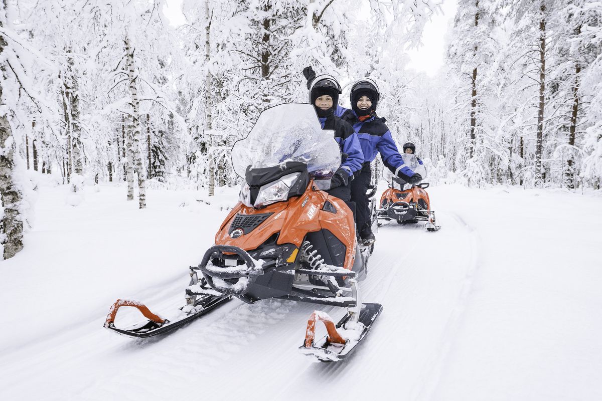 • Snowmobile driving includes instructions and a safety briefing. Two adults ride on one snowmobile. The riding time on snowmobiles is approximately 30 - 40 minutes.