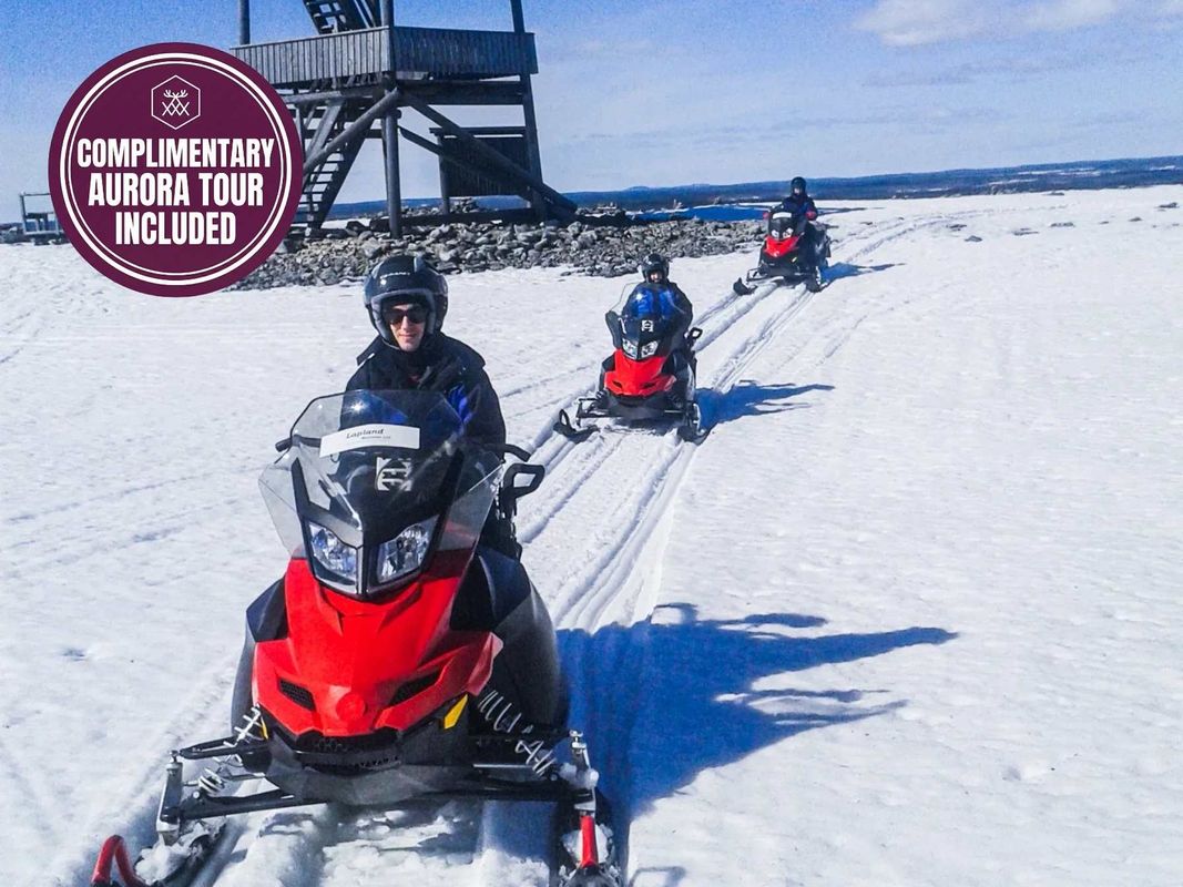 Erleben Sie einen unvergesslichen Tag mit Schneemobilen durch die Wildnis Lapplands. Genießen Sie die atemberaubenden Schneelandschaften Lapplands fernab vom